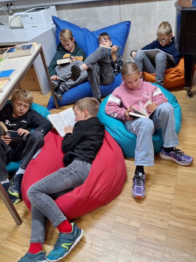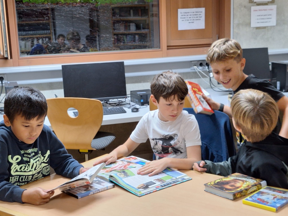 Seit Montag ist unsere Bibliothek wieder zugänglich. Die Klassen 5b, 5c und 5d durften bereits bei einer Führung in den Regalen stöbern und Bücher sowie DVD’s ausleihen. Heute lernte auch die 5a noch unsere Bücherei kennen. Wir freuen uns auf euch immer in den großen Pausen und Montag bis Donnerstag von 13:00-14:00 Uhr.