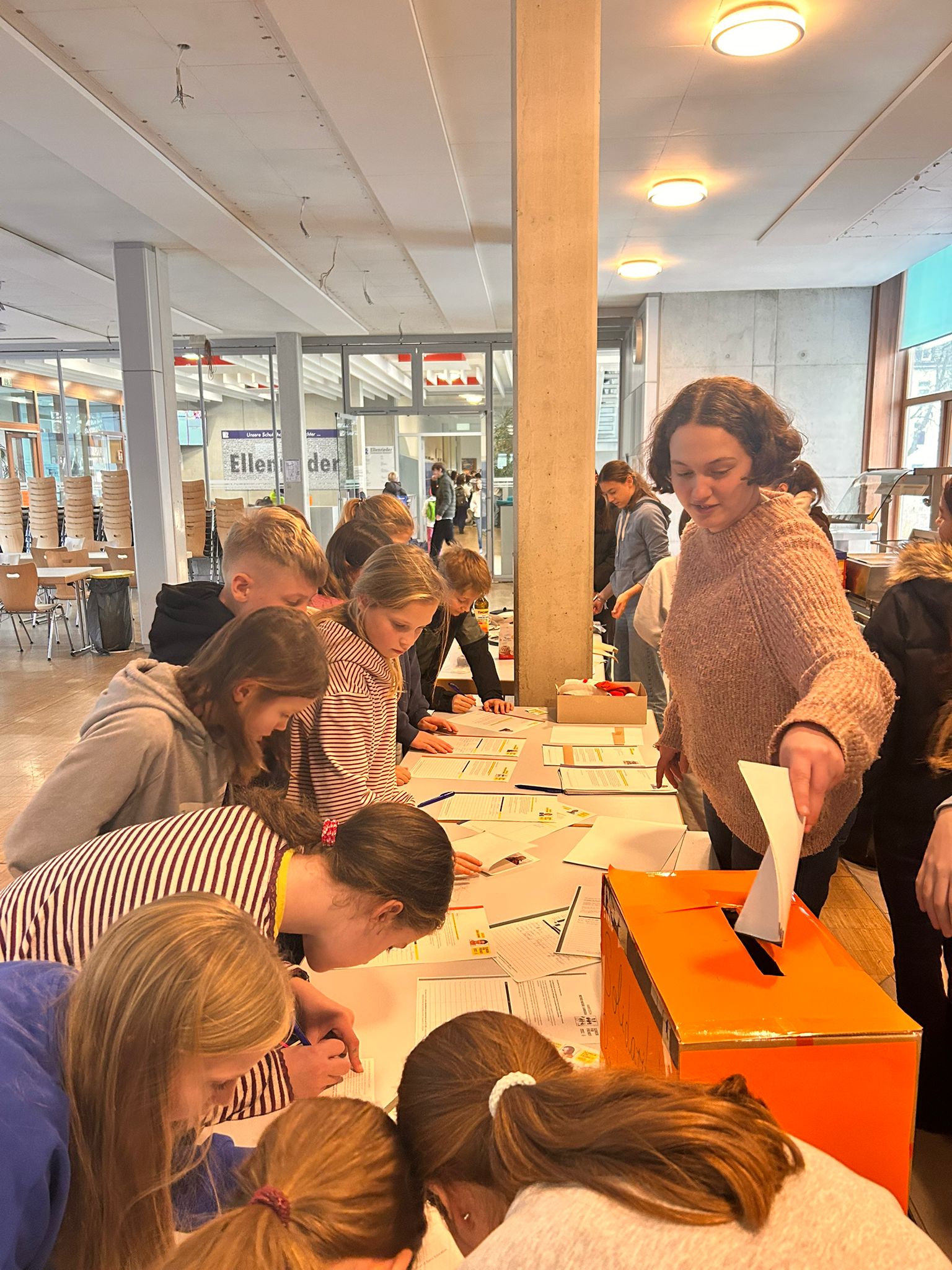 Diese Woche hängen orangefarbene Plakate im ganzen Schulhaus und erinnern an einzelne Artikel der Allgemeinen Erklärung der Menschenrechte – ein Dokument, das 1948 von den Vereinten Nationen verabschiedet wurde und uns seitdem daran erinnert, dass jedem Menschen bestimmte Rechte zustehen – unabhängig von Herkunft, Hautfarbe, Religion oder Geschlecht.