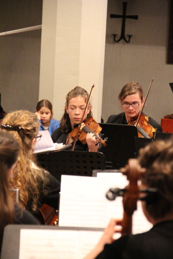 Weihnachtlich und stimmungsvoll kommen auch die Stücke der Orchester daher: Märchenhaft bringt das VorOrchester "Drei Haselnüsse für Aschenbrödel" zu Gehör, während des SinfonieOrchester mit seinen Solist:innen Laura Fantana und Vincent Zisch das festlich-lyrische Weihnachtskonzert Op. 3 Nr. 12 von Francesco Manfredini zum Besten gibt.