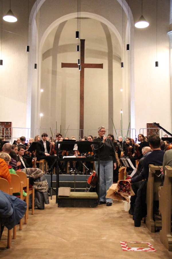 Doch auch das Winterkonzert, obgleich schon lange zur Tradition geworden, entwickelt sich stetig weiter. Mit den Sänger:innen der Basiskurse Musik, dem Unterstufen-, dem Mittelstufen- und dem Männerchor bekommen in diesem Jahr die Stimmen unserer Schüler:innen einen prominenten Platz im Programm. Bei "Hört, der Engel helle Lieder" und dem gemeinsamen Abschlusslied "O du fröhliche" sind schließlich alle Besucher:innen der voll besetzten Lutherkirche zum Mitsingen eingeladen und schaffen so musikalische Momente des Miteinanders.