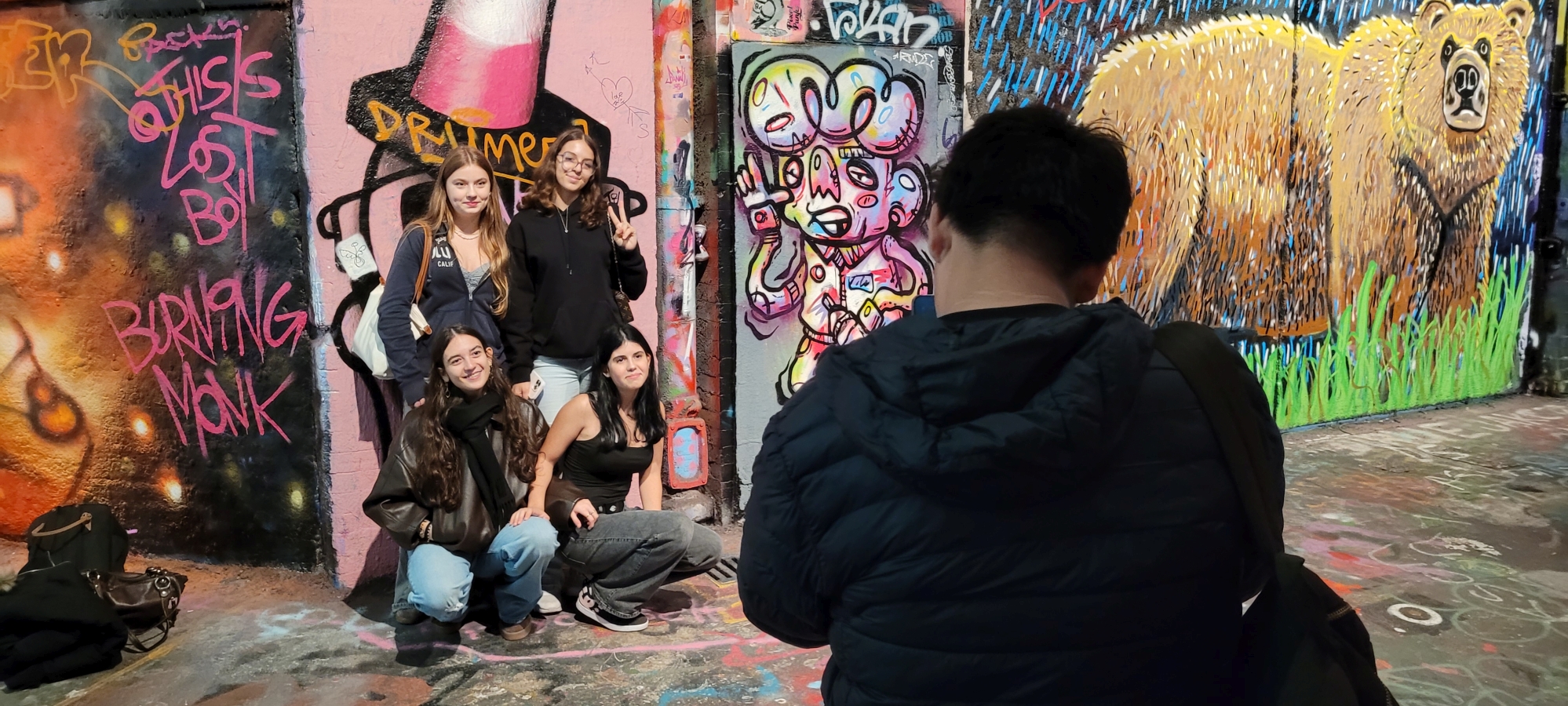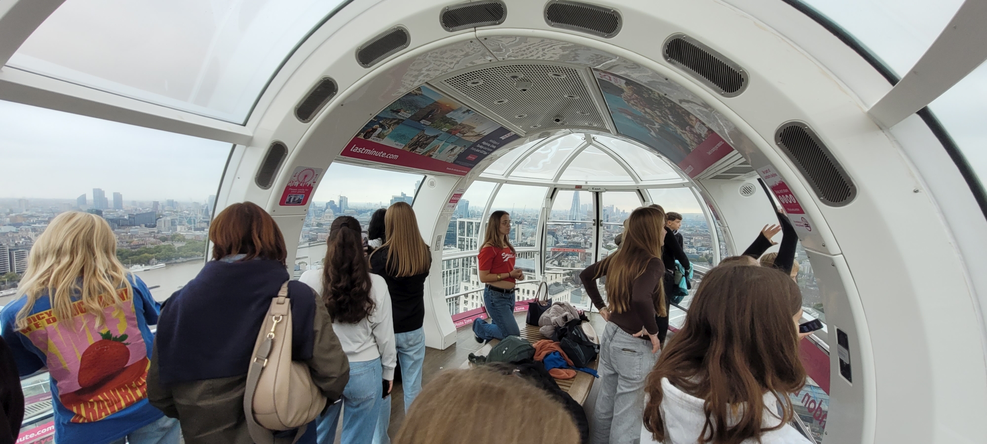 Auf der letzten Etappe mit dem Reisebus wurden Aufregung und Vorfreude auch akustisch wahrnehmbar und die Schüler:innen zeigten sich begeistert vom ersten Eindruck der britischen Hauptstadt bei Sonnenuntergang: