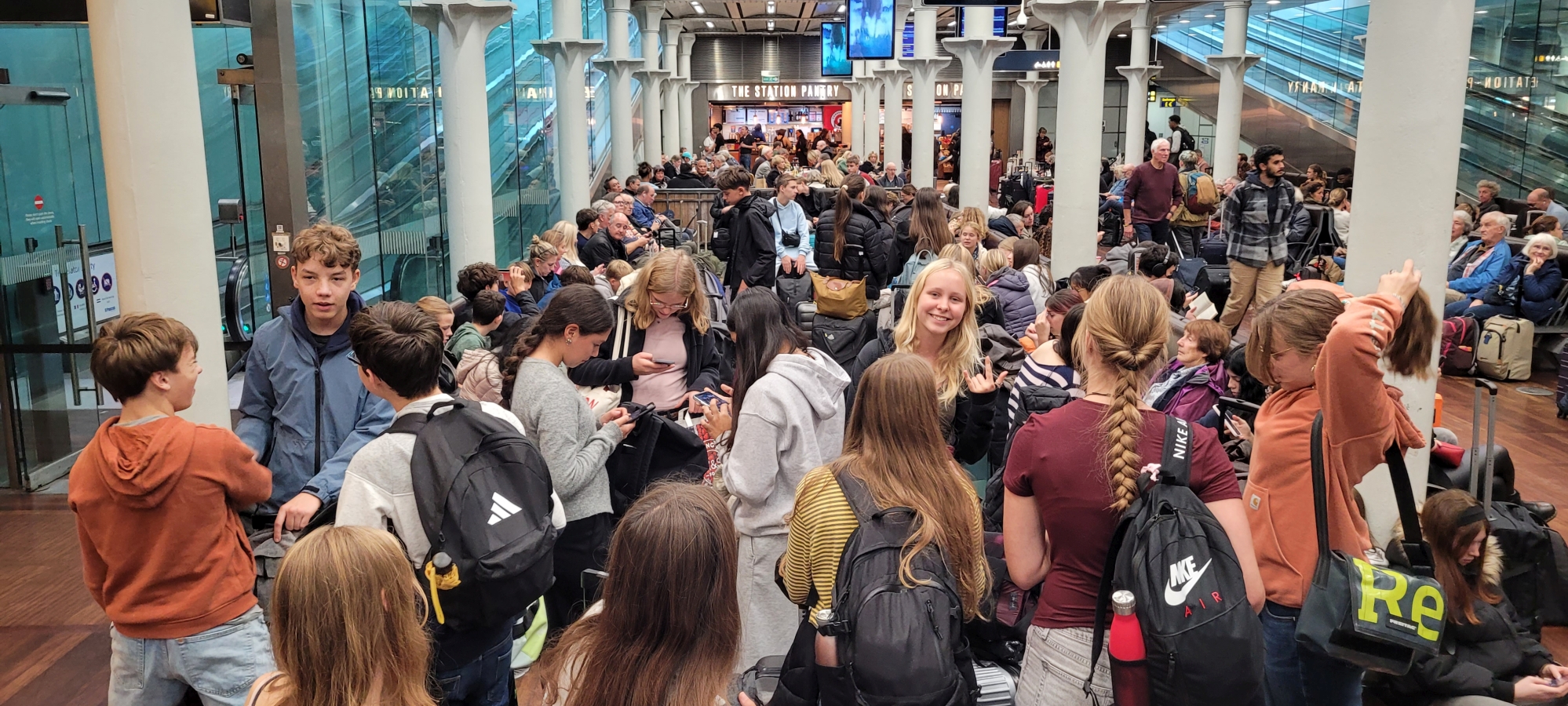 Here we go again: Nach gut 13 Stunden ab Konstanz, vier Umstiegen und - wie sollte es anders sein - auch ein bisschen Nervenkitzel ist unsere Reisegruppe, bestehend aus 46 Schüler:innen und 4 Lehrkäften, wohlbehalten und aufgekratzt an unseren Partnerschulen in Hampton angekommen.